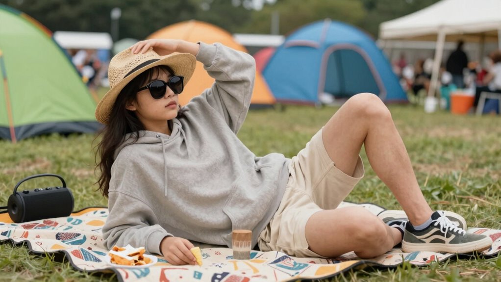 Additionally, incorporating digital tools can help you stay organized and prepared, reducing stress and ensuring you don’t forget any essentials. The trick for the lazy festival-goer is to keep everything organized and minimal. Use packing cubes or small containers to separate clothing, toiletries, and tech gear, so you’re not rummaging through a cluttered bag. Prepare your outfit essentials in advance, so you can just grab and go when you’re heading out. With these simple hacks, you’ll look like you’ve put in effort without actually spending hours fussing over your packing. Less stress, more fun—that’s the goal. When you’re equipped with the right camping gear and a smart wardrobe, you’ll be ready for anything the festival throws your way, all while feeling relaxed and confident.