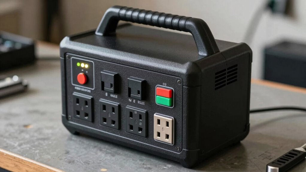 While some specs, like the number of outlets or physical size, are helpful, they’re often less critical than circuit protection and power capacity. Features like waterproofing, port types, or even branding can be secondary, depending on your specific needs. Focus on these core specs to guarantee safety, reliability, and enough power for your applications. A portable power distribution box with robust circuit protection and ample power capacity will give you peace of mind, whether you’re on a job site, camping trip, or emergency setup. Understanding electrical safety standards and proper specifications helps you select a unit that’s safe, efficient, and tailored to your power management needs.