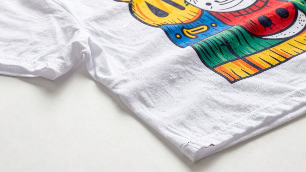 You should wait at least 24 hours before washing new printed items to guarantee proper curing time. This wash delay allows the ink to set fully, reducing the risk of cracking or peeling. Rushing the process can damage the print, so give it ample curing time. Avoid washing too soon, and you’ll extend the life of your merch, keeping prints looking fresh and vibrant after every wash.
