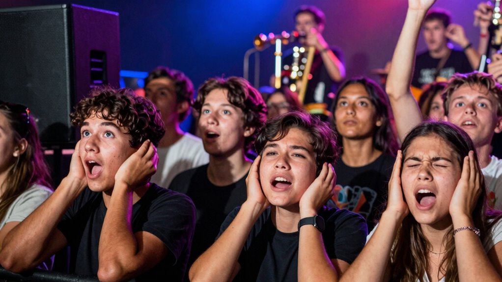Many live music fans underestimate the impact of fluctuating sound levels and often skip consistent hearing protection, thinking only the loudest moments matter. Continuous exposure to moderate noise can cause long-term damage, especially when sound levels spike unexpectedly. Positioning yourself further from speakers helps, but it’s not enough alone. To truly protect your hearing, it’s essential to use proper protection throughout the event. If you want to avoid common mistakes and enjoy music safely, learn more about what you might be overlooking.