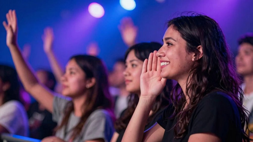 You can politely ask someone to lower their voice by using respectful communication. Say something like, “Hey, I really enjoy our chat, but could you please speak a little quieter? It’s a bit hard to hear the music.” Keep your tone friendly and calm, showing appreciation for their understanding. This approach encourages a positive response and maintains good vibes, ensuring everyone feels comfortable during the concert.