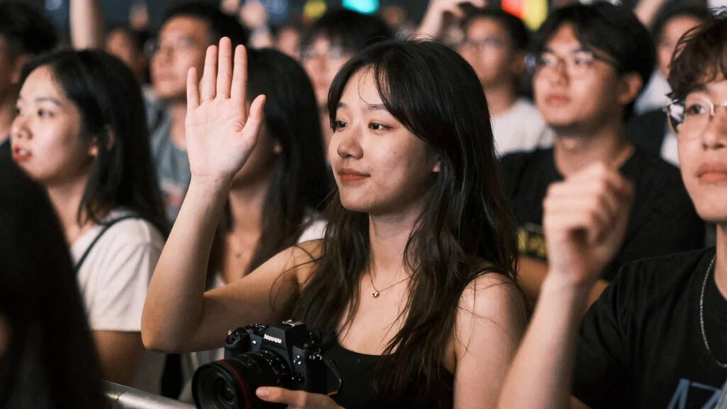 Cultural perceptions heavily influence personal space expectations at shows. You might find that in some cultures, close proximity is friendly, while others value more distance. To navigate this, observe local behaviors and adjust your personal space accordingly. If someone encroaches, politely step back or use a friendly gesture to signal your comfort level. Respecting these cultural differences helps prevent misunderstandings and keeps the atmosphere enjoyable for everyone.