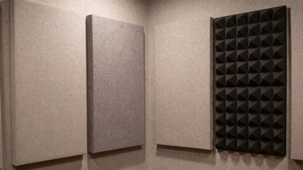 When it comes to improving sound quality in your space, understanding the difference between acoustic panels and bass traps is essential. Both play a vital role in managing sound, but they target different issues and serve different purposes. Acoustic panels are primarily designed to absorb mid and high-frequency sounds, reducing echo and controlling reverb. They’re often made from soft materials like foam or fabric-wrapped mineral wool, and they’re usually mounted directly onto walls or ceilings. One thing to consider is their impact on room aesthetics. Acoustic panels come in various shapes, colors, and designs, allowing you to choose options that blend seamlessly into your decor or stand out as decorative features. Their installation process is generally straightforward—you just need to decide on the placement, attach mounting hardware, and hang them. This simplicity makes them accessible even if you’re not a DIY enthusiast. You can cover large areas with panels to improve clarity and reduce unwanted reflections, creating a more controlled listening environment. Additionally, room acoustics can be significantly enhanced by proper placement of both acoustic panels and bass traps, leading to a balanced sound environment. Bass traps, on the other hand, focus on low-frequency issues that acoustic panels often can’t address effectively. These are crucial in rooms where bass sounds are boomy or uneven, which can muddle music or speech intelligibility. Bass traps are typically thicker and denser than regular panels, often installed in the corners of a room where low-frequency energy tends to gather. Their design is more specialized—they’re built to absorb troublesome bass frequencies that tend to linger and cause muddiness. Installing bass traps can be more complex than adding acoustic panels because they often require more precise placement and sometimes custom fitting to optimize performance. Depending on your space, installation might involve more effort, like cutting into walls or building custom enclosures, which could also influence your room aesthetics. Some bass traps are designed to be unobtrusive, blending into corners, while others may be more noticeable, potentially altering the visual appeal of your room.