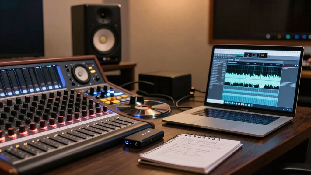Using reference tracks can greatly enhance your music production, but it’s essential to do so without copying. When you select a track to guide your mix, you’re aiming to understand the qualities that make it sound professional—whether it’s the clarity, punch, or balance—without replicating every element. To do this effectively, start by analyzing genre comparison. Different genres have distinct characteristics, so identify what sets your target genre apart. For example, if you’re working on a hip-hop beat, pay attention to the heavy bass and prominent vocals. If you’re producing an EDM track, focus on the energetic synths and dynamic drops. Recognizing these genre-specific traits helps you understand the context and avoid simply mimicking the sound.
