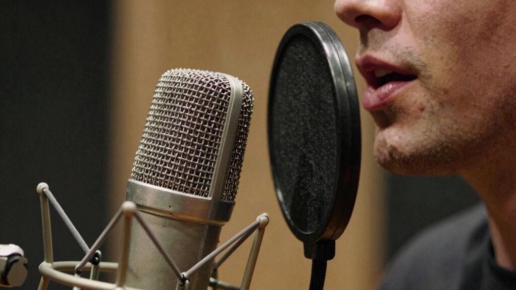 Think of a singer who adjusts their singing distance during a vocal warm-up, intentionally staying farther from the mic to avoid proximity effect. Your vocal technique can influence this by controlling your singing distance; staying a consistent, moderate distance helps prevent thin-sounding vocals. Proper vocal warm-ups teach you to maintain ideal distance, ensuring your tone stays full and balanced without the unwanted bass boost or thinness caused by proximity.