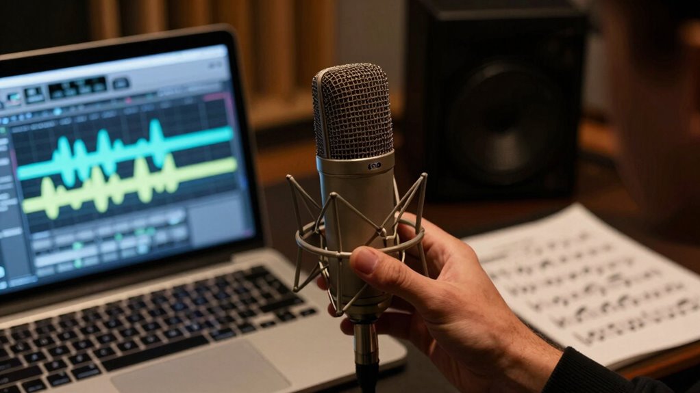 For high-quality transcription, you need good equipment like a quality audio interface or digital recorder to capture clear sound. Use headphones with noise cancellation to focus on the music. A computer with audio editing software helps isolate and slow down recordings for easier transcribing. With precise audio, you can accurately convert solos into music notation, making the process smoother and more accurate.