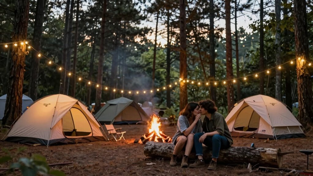When enjoying a night at a campground, being mindful of noise levels is vital to make certain everyone has a pleasant experience. Campgrounds are shared spaces, and respecting others’ need for peace helps foster a friendly atmosphere. One of the key aspects of campground etiquette is observing quiet hours, which are designated times when noise should be kept to a minimum. These hours are typically posted at the site or campground entrance, and they’re there to guarantee everyone gets a good night’s sleep. During quiet hours, loud conversations, music, and other disruptive noises should cease. Instead, focus on creating a calm environment so fellow campers can rest peacefully.