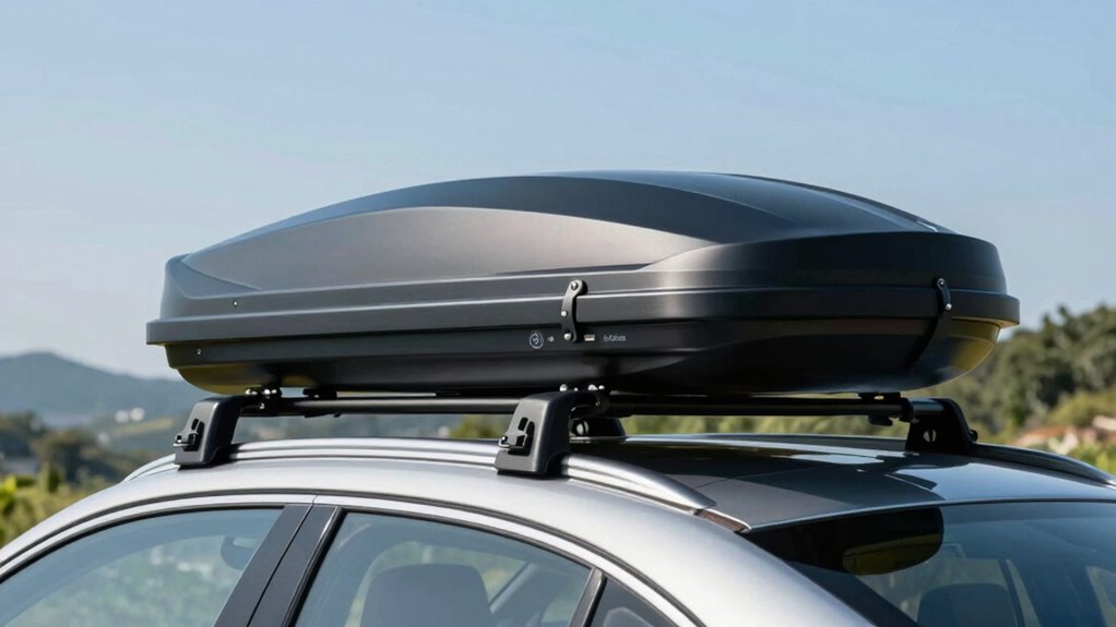 Think of your SUV and cargo box as a perfect dance partners; they need to move in harmony. To guarantee vehicle compatibility and a seamless roof rack fit, check your SUV’s roof weight limit and dimensions. Measure your roof’s width and cross-reference with the cargo box specifications. Consulting your vehicle’s manual or manufacturer’s guidelines helps you avoid a misstep, ensuring your gear stays secure and your journey smooth.