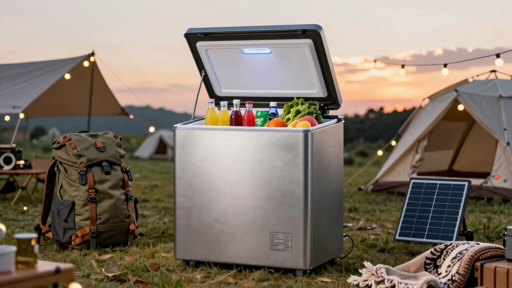 Are you looking for a portable fridge freezer that fits your outdoor adventures or on-the-go needs? If so, you’ll want to make certain you choose one that balances performance with practicality. When it comes to festival camping, size considerations are vital. You need a unit compact enough to carry easily and fit into your vehicle or tent without taking up too much space, yet large enough to hold everything you need for your trip. Think about how much food and drinks you’ll want to store. If you’re just packing for a weekend, a smaller model might do; for longer festivals, a slightly bigger fridge freezer could save you from constantly restocking.