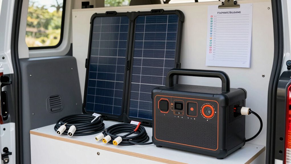 Additionally, never overlook grounding your system properly. Proper grounding minimizes the risk of electrical shocks or damage from power surges. Keep documentation of your wiring layout and component specifications handy; this makes troubleshooting easier if issues arise later. Regularly inspecting your system for signs of wear or damage is crucial to maintain safety and performance. Remember, the goal isn’t just to get your battery power station working but to do so safely and efficiently. Taking the time to ensure proper solar panel integration, wiring safety, and correct component ratings will save you headaches on the road and extend your system’s lifespan. Stay diligent, and your vanlife energy setup will serve you well, mile after mile.