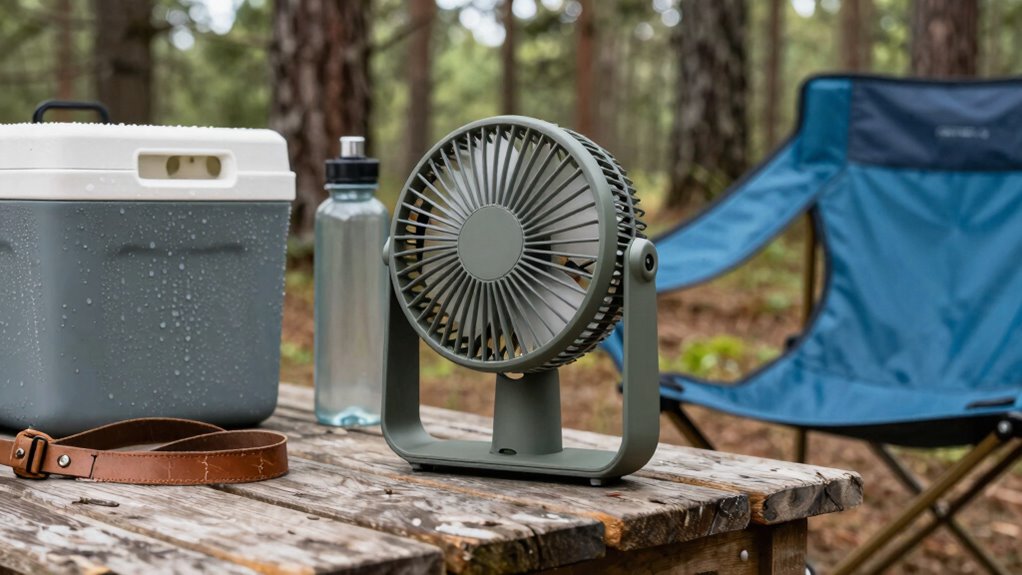 When camping in hot weather, staying cool can make all the difference in enjoying your outdoor adventure. You want a camp fan or portable cooling setup that keeps you comfortable without draining your energy or causing unnecessary disturbances. Two key factors to consider are battery life and noise levels. Your choice of fan should prioritize long-lasting power so you’re not constantly searching for new batteries or worrying about it dying in the middle of the night. Look for models with extended battery life, especially if you’re planning to camp for multiple days. Some fans come with rechargeable batteries, allowing you to recharge overnight or with portable power banks, giving you reliable cooling without the hassle of disposable batteries. Battery efficiency becomes even more critical if you’re off-grid and don’t have easy access to power sources.