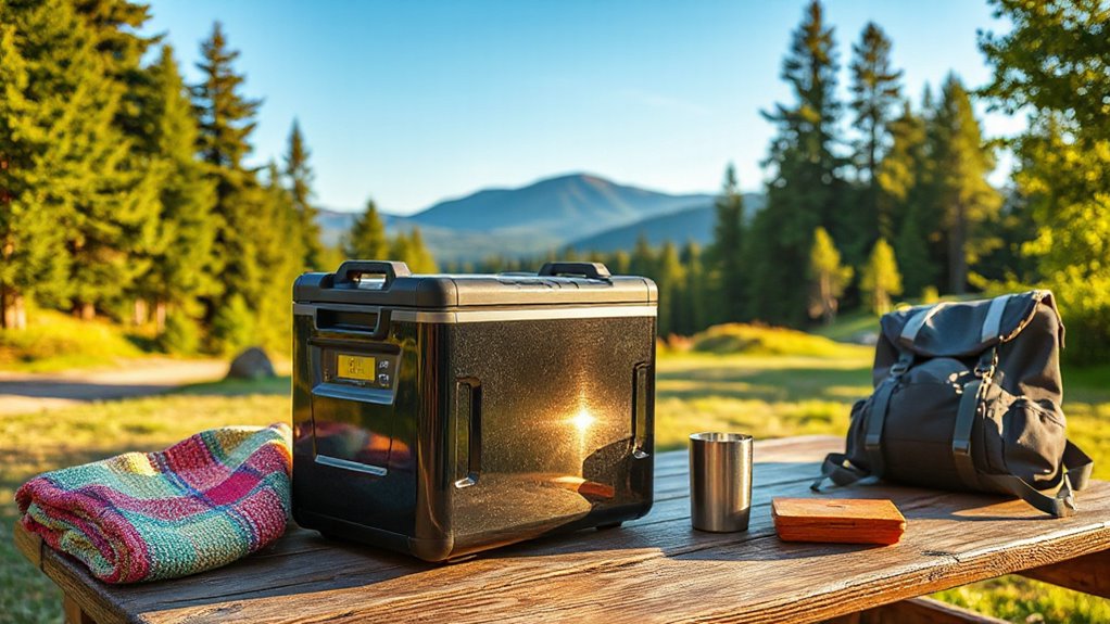 When choosing a 12V portable refrigerator freezer for car camping, portability and design are key factors that can make or break your experience. I look for models that are lightweight and compact, making them easy to transport and fit in my vehicle without hassle. Recessed or ergonomic handles are a plus, providing a secure grip for carrying or installing the unit. Reversible or removable doors enhance accessibility, especially in tight spaces or awkward positions. Built-in handles or hooks help secure the freezer during travel and allow quick repositioning. Additionally, a rugged, shock-resistant exterior ensures durability, so it can handle bumpy roads and rough terrain without compromising performance. Overall, a well-designed, portable fridge freezer makes outdoor adventures more convenient and enjoyable.