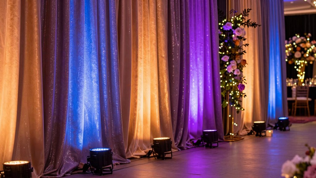 A broad color range and versatile effects can considerably elevate the atmosphere of any event. When choosing uplights, I look for models that offer extensive color options, like RGB, RGBW, or multi-color setups such as 6-in-1 or 12-color configurations. Advanced color mixing capabilities are essential for smooth gradation and static colors, helping set the perfect mood. I also prioritize lights with special effects like fading, jumping, strobe, or color pulses, which add visual excitement. A wide color spectrum, including primary, secondary, and specialty colors like white, amber, or UV, provides flexibility for different themes. Additionally, adjustable hue, shade, and saturation controls allow precise customization, ensuring the lighting complements the event’s ambiance flawlessly.
