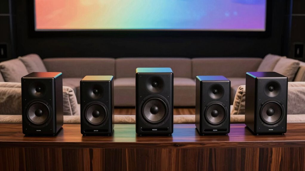 Choosing the right bookshelf speakers can transform your home theater experience into something truly epic—like having a concert in your living room. Whether you prefer deep bass, crisp highs, or versatile mounting options, there’s a perfect pair waiting for you. Don’t settle for less; your audio journey deserves the best. With these top picks, you’ll turn ordinary movie nights into unforgettable audiophile adventures that blow everything else out of the water.