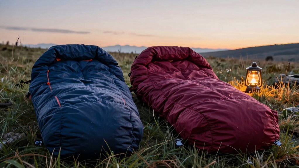 Think of a double sleeping bag as a cozy island of warmth in a vast sea of outdoors. I’ve found they’re quite efficient for backpacking when you choose lightweight, compact models. They save space and eliminate the hassle of matching separate bags. Plus, sharing warmth is easier. Just make sure to pick one that’s suitable for your climate, and you’ll enjoy a comfortable, intimate night under the stars.