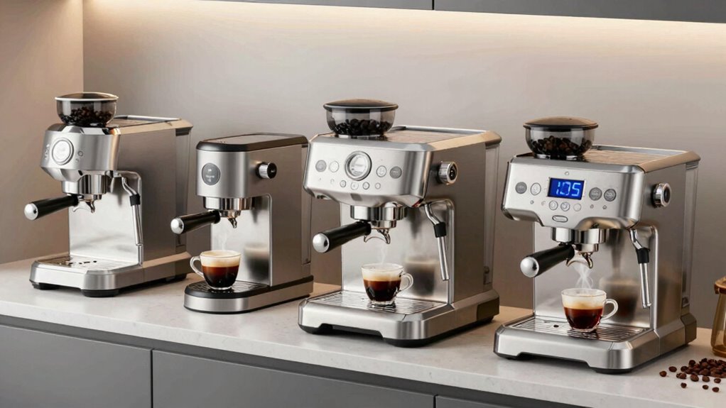 If you’re looking for the 15 best espresso machines for beginners in 2026, I’ve got you covered. These models are user-friendly, compact, and deliver café-quality results with features like one-touch operation, powerful pressure pumps, and reliable milk frothing. They suit home or small office use and are built for easy maintenance. Keep exploring, and you’ll discover the perfect machine that matches your needs and budget—there’s always more to learn about choosing the right espresso maker.