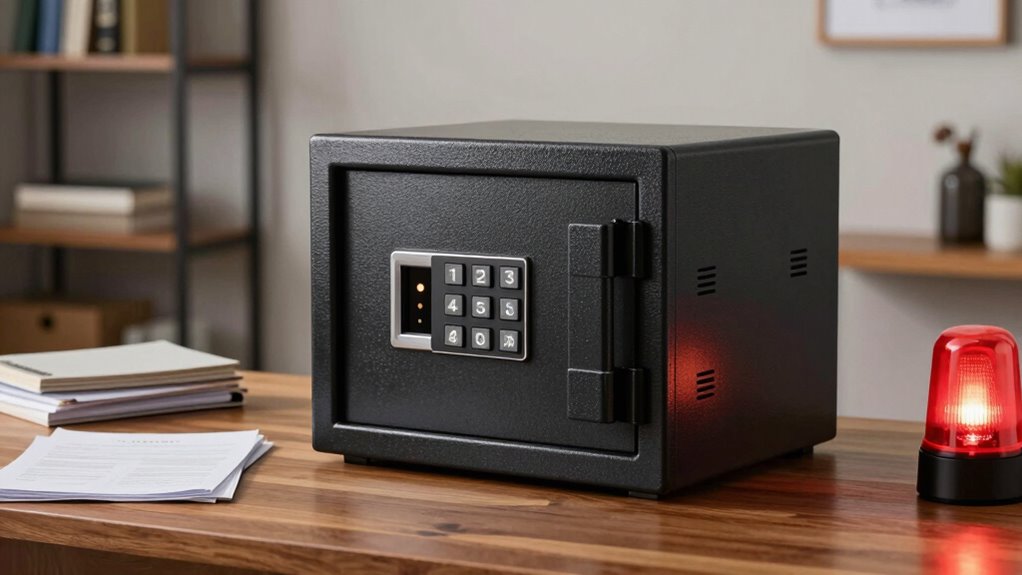 Did you know that choosing a safe with advanced security features can make all the difference? I recommend looking for safes with solid steel construction, reliable digital or biometric locks, and pry-resistant doors. It’s also smart to select one with an anchoring system to prevent theft. These features work together to keep your important documents secure, giving you peace of mind knowing your valuables are well-protected.