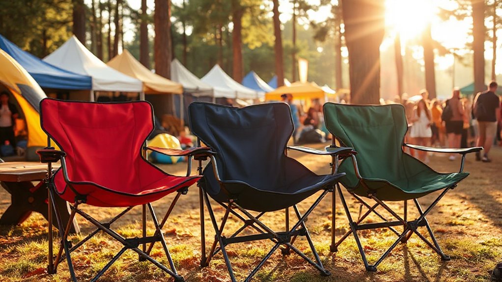 Imagine settling into one of these sturdy chairs as the sun dips below the horizon, the sounds of the festival swirling around you. With a reliable high weight capacity, I know you’ll find comfort and support, no matter the crowd. It’s like finding that perfect spot where the grass is soft and the moment feels just right. So, pick your perfect chair, and make every festival experience one to remember—comfortable, supported, and ready for whatever comes next.