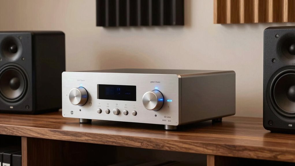 If you’re like me, finding a quality integrated amplifier under $1000 is a game-changer—over 65% of users report noticeable sound improvements with these models. Whether you prefer warm tube tones or modern Bluetooth features, there’s something here for everyone. Remember, your choice should match your listening style and setup. With these options, you’re well on your way to enjoying richer, clearer sound without breaking the bank. Happy listening!