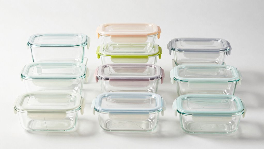 I’ve learned the hard way that leak-proof lids are essential—imagine packing a salad only to find dressing everywhere! Luckily, most glass meal prep containers now come with secure, leak-proof lids, ensuring your food stays put. These lids often feature silicone seals and locking mechanisms, giving me peace of mind whether I’m commuting or storing leftovers. It’s a simple upgrade that makes a big difference in keeping messes at bay.