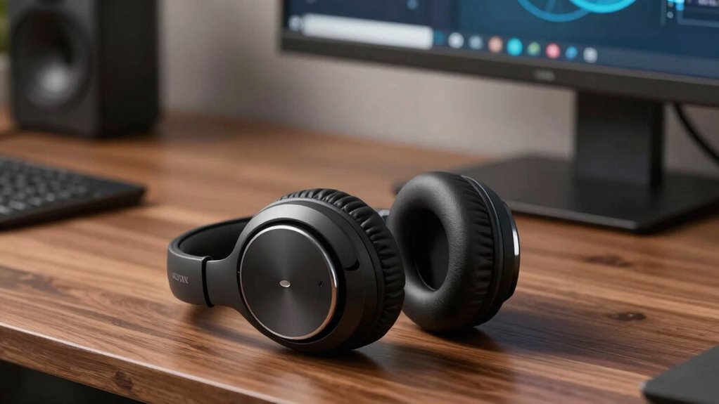 Excellent sound quality is crucial when selecting noise-canceling headphones under $500, and several key factors can help guarantee you get the best audio experience. First, look for headphones with large drivers, like 40mm or bigger, as they deliver richer, more detailed sound. Support for Hi-Res audio standards and features like BassUp technology can considerably enhance bass and overall clarity. A balanced sound profile with clear highs, mids, and deep bass ensures an immersive listening experience across genres. Multiple listening modes, such as Music, Gaming, or Transparency, optimize sound quality for different scenarios. Ultimately, advanced tuning and customizable EQ settings allow you to personalize your audio, ensuring the sound performance matches your preferences and elevates your listening pleasure.