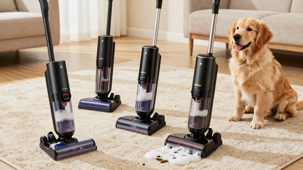 If you’re searching for the 14 best portable carpet cleaners for pets in 2026, I’ve got you covered. These models offer powerful suction, advanced stain and odor removal, and user-friendly features that make cleaning quick and effective. They’re compact, lightweight, and equipped with specialized formulas and tools designed for pet messes, hair, and odors. Keep going to discover detailed insights on top options that can transform your pet cleanup routine.