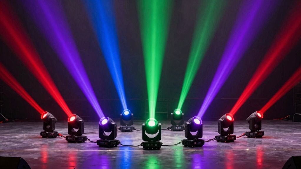 Choosing the right portable PA lighting kit depends heavily on its versatility and features, which determine how well it adapts to different event environments. A versatile kit should offer multiple lighting modes like static, strobe, fade, and sound-activated to match various atmospheres. Features such as DMX compatibility and adjustable angles allow for advanced customization and synchronization with music or sound cues. Easy-to-use integrated stands with adjustable heights and secure mounts provide flexibility across different venues. Compatibility with various fixtures like par lights, LED bars, and mirror balls enhances the kit’s adaptability. Extras like remote controls, quick assembly, and portability accessories make setup faster and more convenient, ensuring I can deliver dynamic lighting tailored to any event setting.