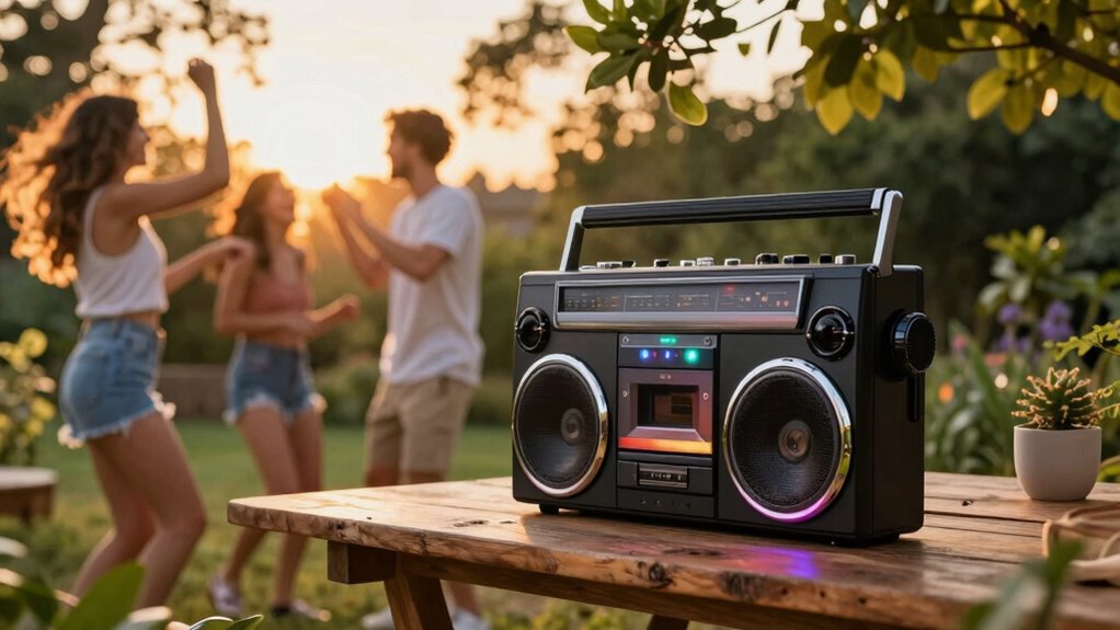 Sure, because who doesn’t love a good rainstorm during a beach party? Most premium boombox speakers are surprisingly weather-resistant, often rated IPX4 or higher, meaning they can handle splashes and light rain. I’ve tested a few, and they keep rocking despite unexpected showers. Just remember, a sudden downpour might still be a bit too much—so I’d suggest keeping them under cover if possible.
