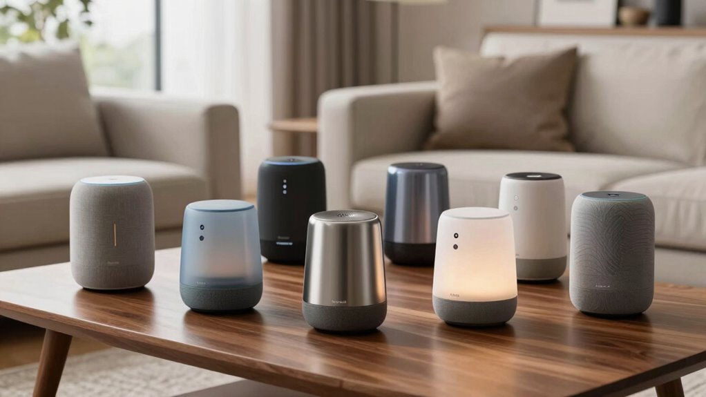 Choosing a smart speaker isn’t just about features and connectivity; how it interacts with your room’s acoustics makes a big difference in sound quality. The size, shape, and surface materials of your space influence how sound waves reflect and absorb, affecting clarity and bass. Hard surfaces like tile and glass tend to reflect sound, creating echoes and reverberation that can muddy audio and reduce bass response. Soft furnishings such as carpets, curtains, and furniture absorb sound, helping to minimize echo and improve clarity. Smaller rooms often enhance bass and clarity, while larger spaces can cause sound dispersion and reduce volume. Proper speaker placement, considering your room’s dimensions and acoustic properties, is vital for achieving balanced, high-quality sound from your smart speaker.