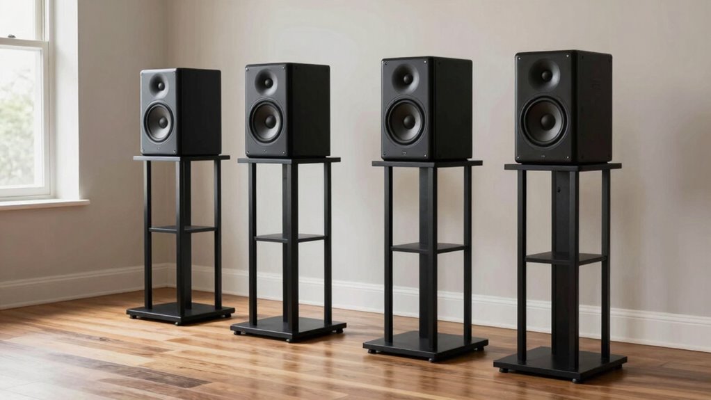 If you’re looking for the 15 best heavy-duty speaker stands for bookshelf speakers in 2026, I’ve found some great options that combine stability, durability, and adjustability. These stands can support weights up to 100 lbs, feature adjustable heights, and have cable management systems to keep things tidy. Many are made from steel, MDF, or tempered glass for added stability. Stick around, and you’ll discover which stands meet your needs for the perfect audio setup.
