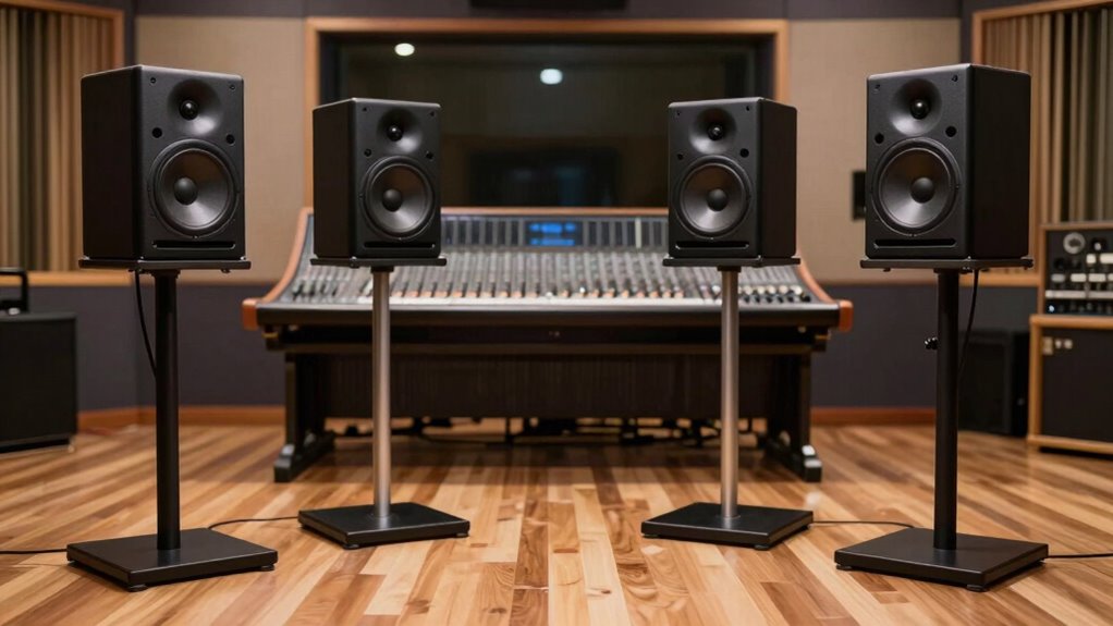 I know choosing the right heavy-duty speaker stands can feel overwhelming, but trust me, investing in quality makes all the difference. Don’t let concerns about durability hold you back—these stands are built to last and keep your studio monitors steady. When you prioritize stability and safety, your sound improves, and your focus stays on creating. So go ahead, pick the stands that give you confidence—your music deserves that level of support.