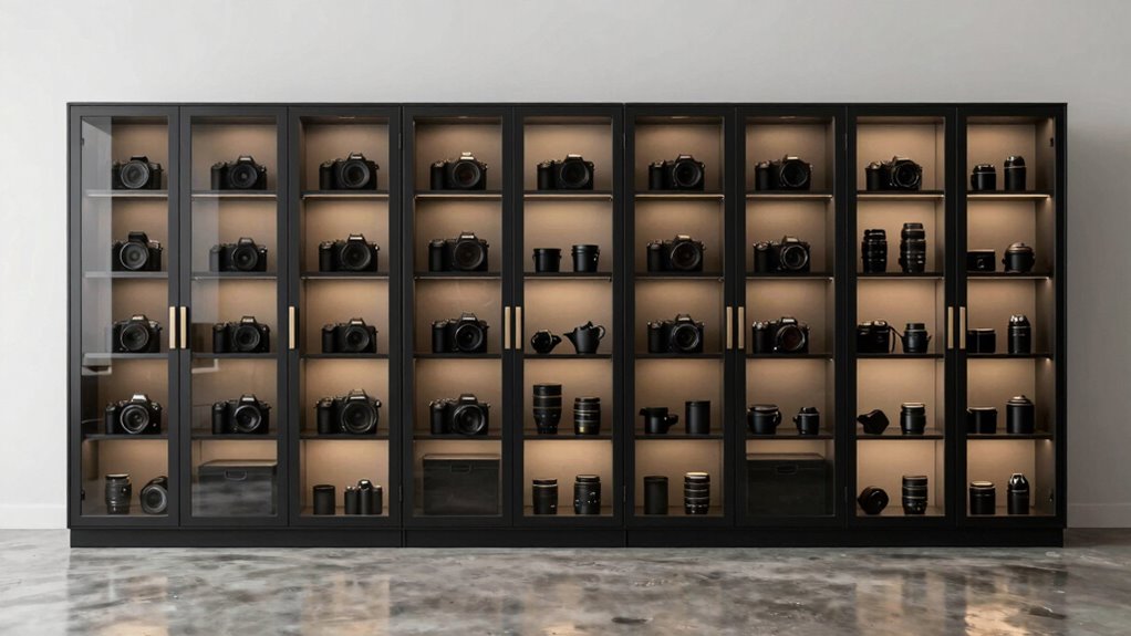 Yes, these storage solutions can accommodate future gear expansion. I’ve designed them with adjustable shelves and modular compartments, so I can easily reconfigure or add more space as my collection grows. This flexibility guarantees I won’t need to replace my cabinets when I acquire new equipment. I suggest choosing models with customizable features, so you can adapt your storage to future needs without hassle.