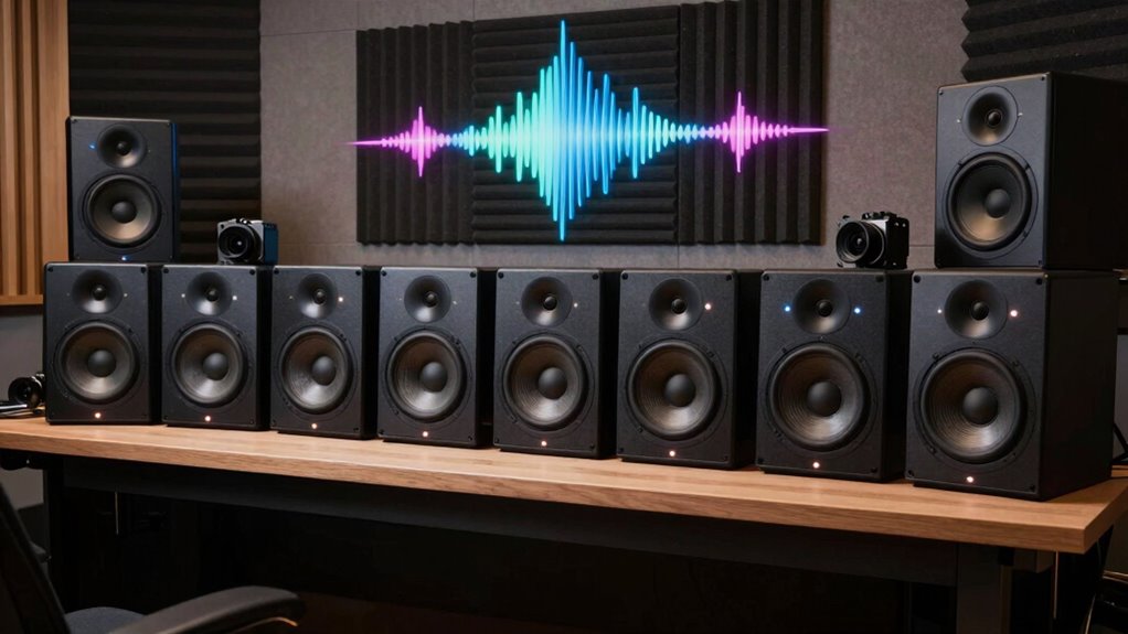 If you’re looking for the 13 best studio subwoofers for your home setup in 2026, I recommend checking out models like the PreSonus Eris Sub 8BT, Edifier T5s, ADAM T10S, Mackie CR8SBT, Klipsch R-12SW, and Rockville Rock Shaker 8. These offer a mix of deep bass, clear sound, wireless options, and solid build quality, suitable for mixing, production, or immersive listening. Keep exploring as I guide you through what each offers and how to choose the right one.