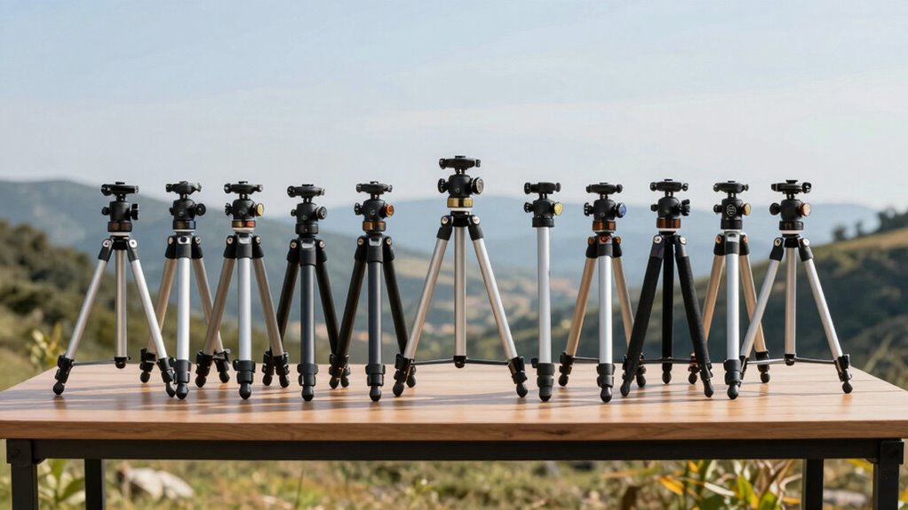 If you’re looking for the 15 best lightweight tripods for travel video in 2026, I’ve got you covered. I recommend models like the Amazon Basics 50-inch tripod, Perlegear 60-inch adjustable tripod, and EUCOS 62-inch phone tripod, which balance portability and stability. These options support various devices and pack easily into a backpack. Keep in mind key factors like weight, height adjustability, and durability. To make the best choice, you’ll want to explore each feature closely—there’s more to discover ahead.