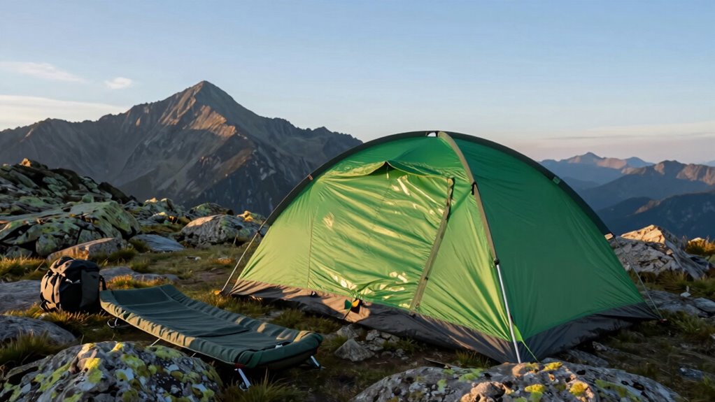 Ensuring a tent can handle wet weather is crucial for a successful tour, especially since conditions can change unexpectedly. I look for models with a waterproof rating of at least 3000mm or higher, which can withstand heavy rain without leaking. Sealed seams and taped junctions are essential, as they prevent water from seeping through connection points. A durable rainfly made from high-quality polyester or nylon with waterproof coatings adds extra protection in stormy conditions. I also check for a waterproof groundsheet or footprint to shield against ground moisture and flooding. To combat condensation, I prefer tents with adjustable vents or mesh panels, promoting airflow and keeping the interior dry and comfortable. These features give me confidence in my gear, no matter the weather.