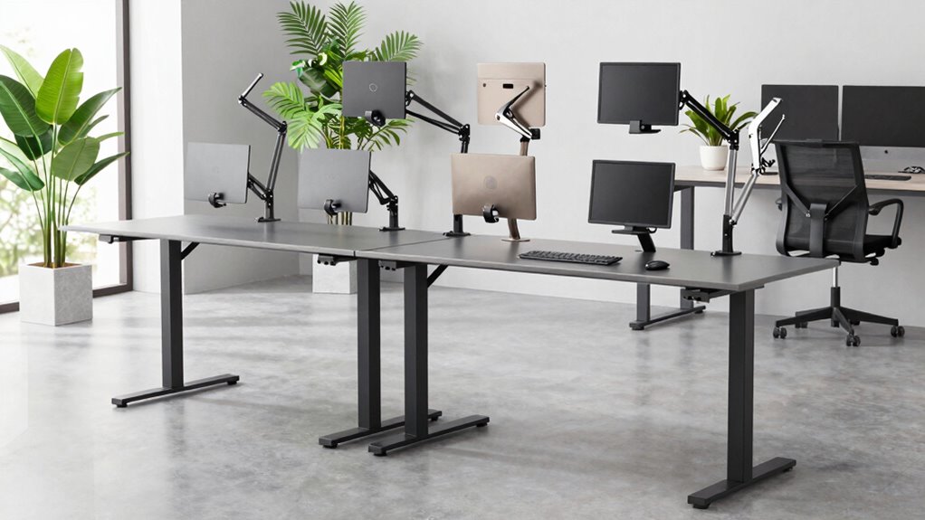 I’ve looked into the top under-desk PC mounts for standing desks in 2026, and there are some great options. These mounts are designed for easy installation, sturdy support, and promote airflow to keep your hardware cool. Whether you want clamp-on or open-frame designs, many support heavy cases and are adjustable for perfect fit. Keep scrolling to discover which models suit your needs best and how to choose the right one for your workspace.