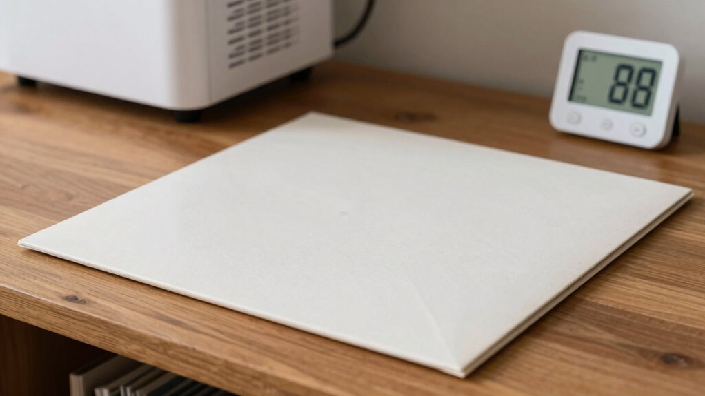 Mold can quickly develop on record sleeves if you don’t take proper precautions, posing a risk to both your records and your listening experience. Mold thrives in humid environments, so managing the humidity levels in your storage area is vital. Implementing effective storage tips is the first step to prevent mold growth. Keep your records in a cool, dry place away from direct sunlight, and avoid storing them in basements or attics where humidity fluctuates. Using airtight storage containers or sleeves that are breathable but resistant to moisture can also help maintain a stable environment. When stacking your records, guarantee they’re not packed too tightly, as poor airflow can promote mold development. Regularly inspecting your collection allows you to catch any early signs of mold or mildew, preventing larger issues down the line. Additionally, humidity control devices like dehumidifiers or silica gel packs are essential tools in maintaining optimal storage conditions. Cleaning methods play a vital role in maintaining your records and their sleeves. Before storing new records, give them a thorough cleaning to remove dust, fingerprints, and potential mold spores. Use a record cleaning solution or a mixture of distilled water and a few drops of rubbing alcohol, applied with a soft cloth or microfiber towel. Be gentle to avoid damaging the vinyl or the sleeve. For existing records with mold, you’ll need to clean both the vinyl and sleeves carefully. For vinyl, a dedicated record cleaning brush or machine can be effective. For sleeves, gently wipe with a damp cloth and mild detergent, then dry thoroughly before returning the record. If mold persists, consider replacing heavily affected sleeves to prevent spores from spreading to other records. Maintaining proper humidity levels is essential; ideally, keep your storage area between 40-50% humidity. Using a dehumidifier or silica gel packs can help absorb excess moisture. Avoid storing your records in damp environments or areas prone to leaks. Consistently monitoring humidity and temperature helps prevent mold from taking hold. You should also be cautious about handling your records with clean hands, as oils and dirt can accelerate mold growth. When storing, guarantee your records are completely dry and free of any mold before placing them in sleeves. This proactive approach, combined with good storage tips and diligent cleaning methods, will help you keep your record collection pristine and mold-free for years to come.